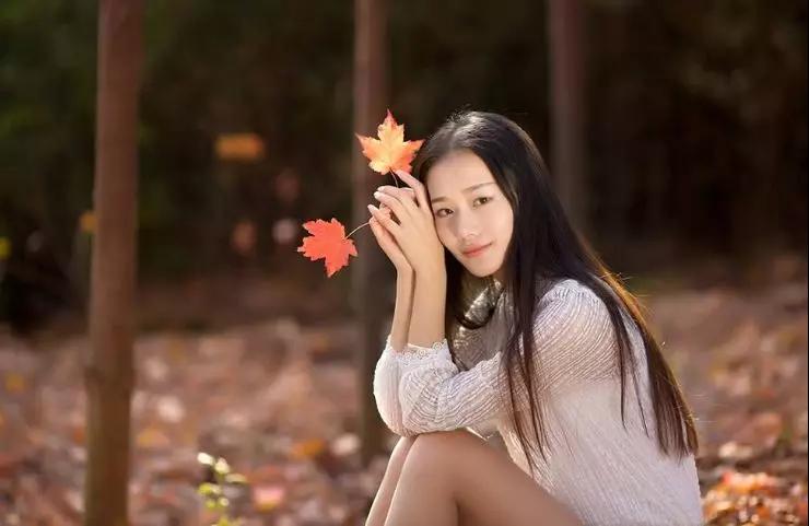 (2)如果想讓前景更加虛化:可以用一些樹(shù)葉,遮在鏡頭前,形成虛化的前景。但是,不要讓前景,把模特兩只眼睛都遮住。