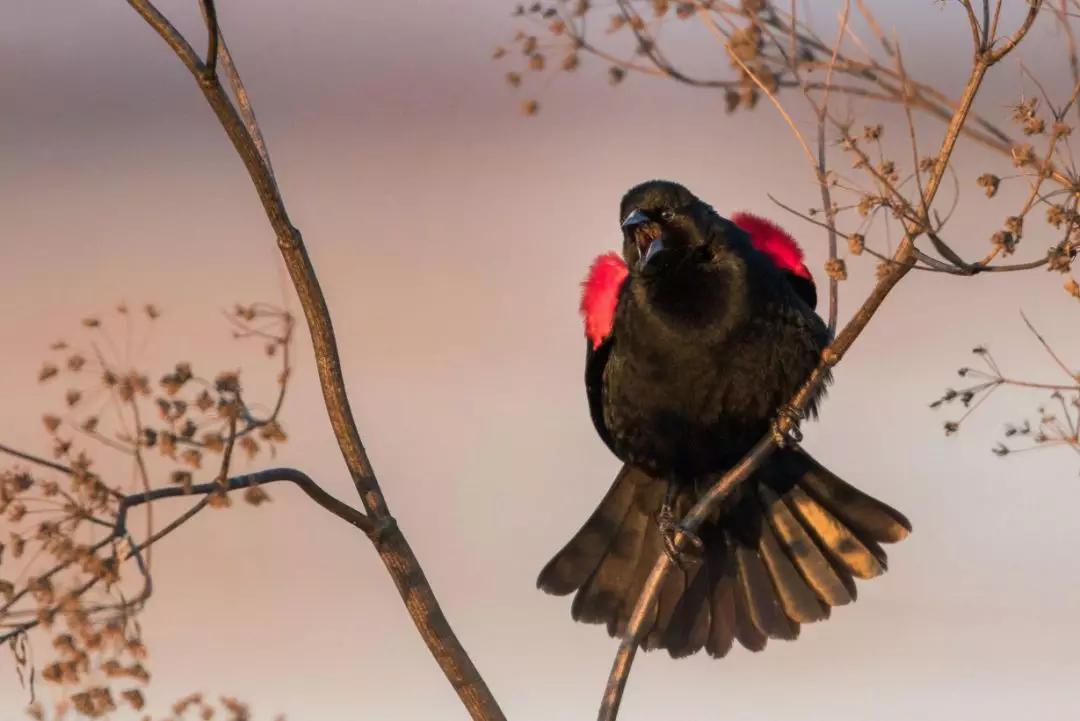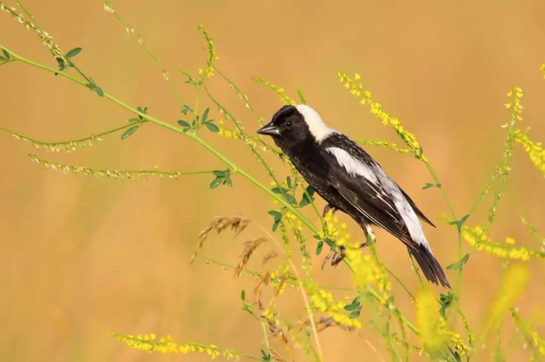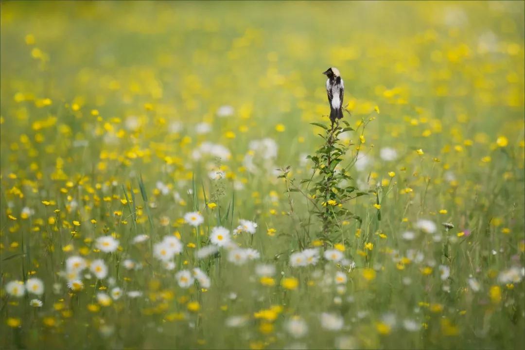 照片背后的故事:“日落時的鄧恩牧場草原變成了一片金黃色的草地,這只雄性食米鳥短暫的落在樹枝上好奇地掃了眼我的相機。他機械般的鳴唱被幾十只在我頭頂飛過的同伴回應(yīng)著,我趕緊在它飛走前拍下了這張照片。”