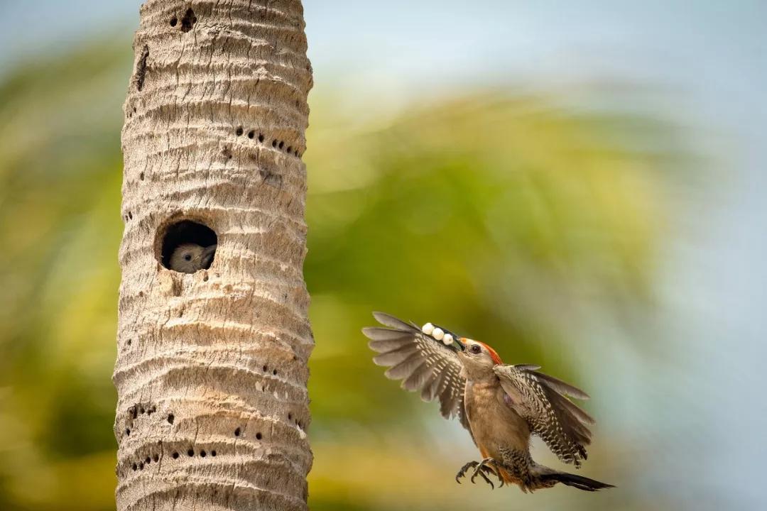 照片背后的故事:“去年,我搬到圣地亞哥不久后,就發(fā)現(xiàn)了一對黃鸝頻繁造訪我院中的加利福尼亞蒲葵。當(dāng)我看到雌性黃鸝在用蒲葵葉上的纖維搭巢時,我立刻拿起了我的相機。