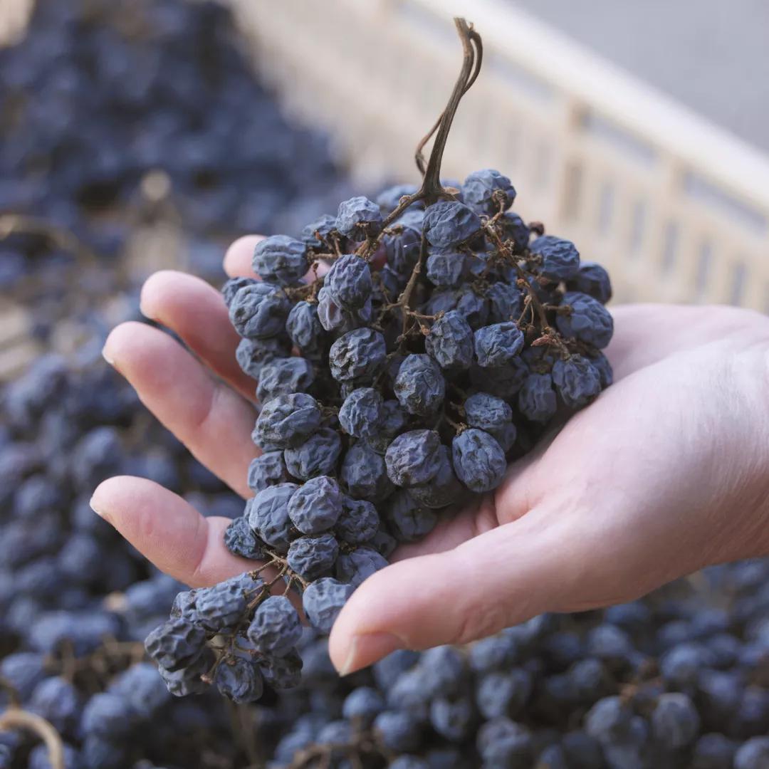 不同于藤上風(fēng)干,經(jīng)過Appassimento工藝的葡萄中酸度會在風(fēng)干過程中得以保留,并隨著糖分,風(fēng)味物質(zhì)等一并濃縮。