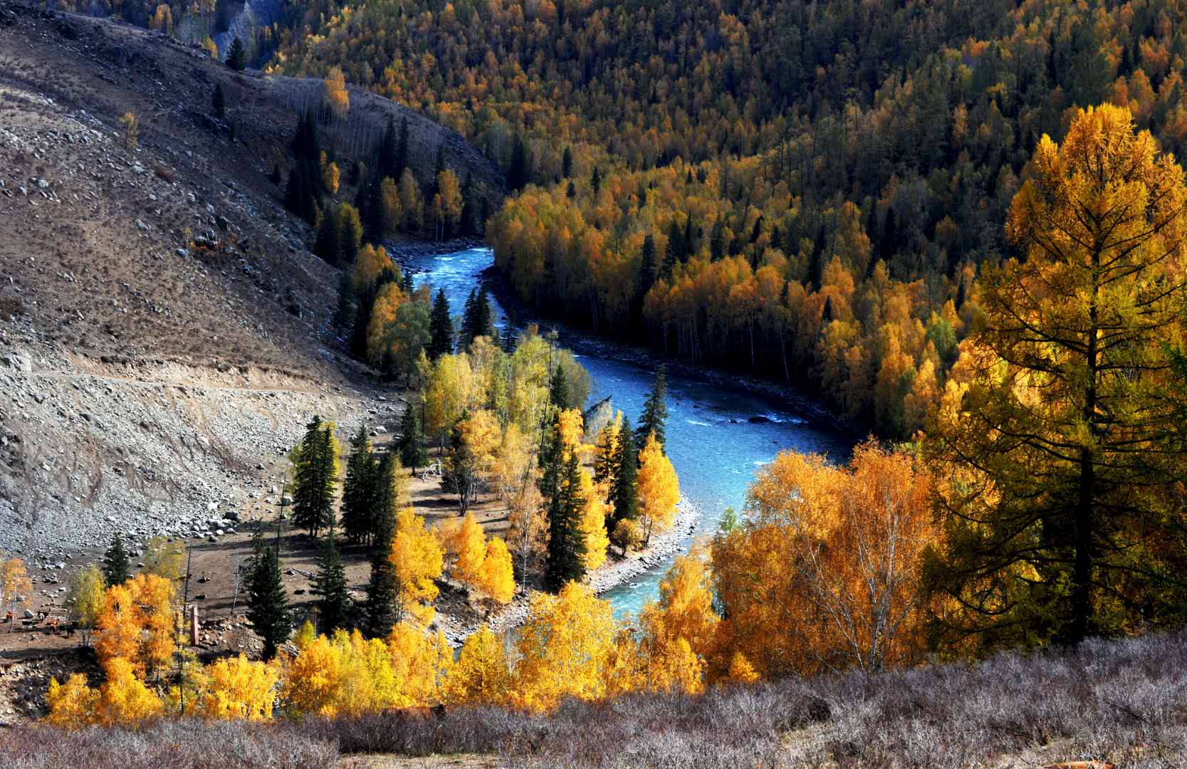 抵達烏魯木齊,游覽【五彩灘】,后前往布爾津,晚入住酒店休息;