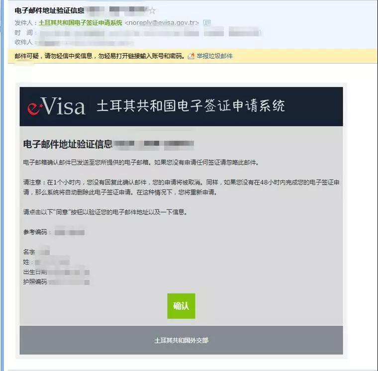 注:需要在1小時內確認此郵件,并在48小時內完成電子簽證的申請,否則簽證將被取消。