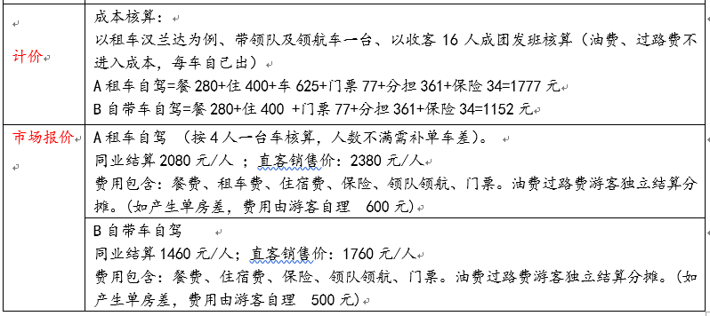 三、確定自駕游旅游產品價格