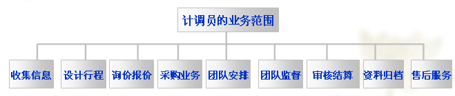 計調主要任務是按接待計劃落實團隊在食、宿、行、游、購、娛等方面的具體事宜,以確保行程、日程正常進行。