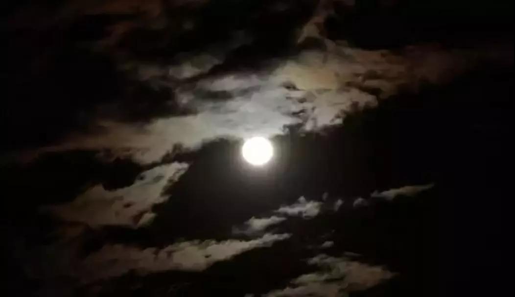 由于整體環(huán)境光的不足,相機在自動曝光模式下很可能開大光圈或調(diào)高快門,導致本來就挺亮的月亮過曝: