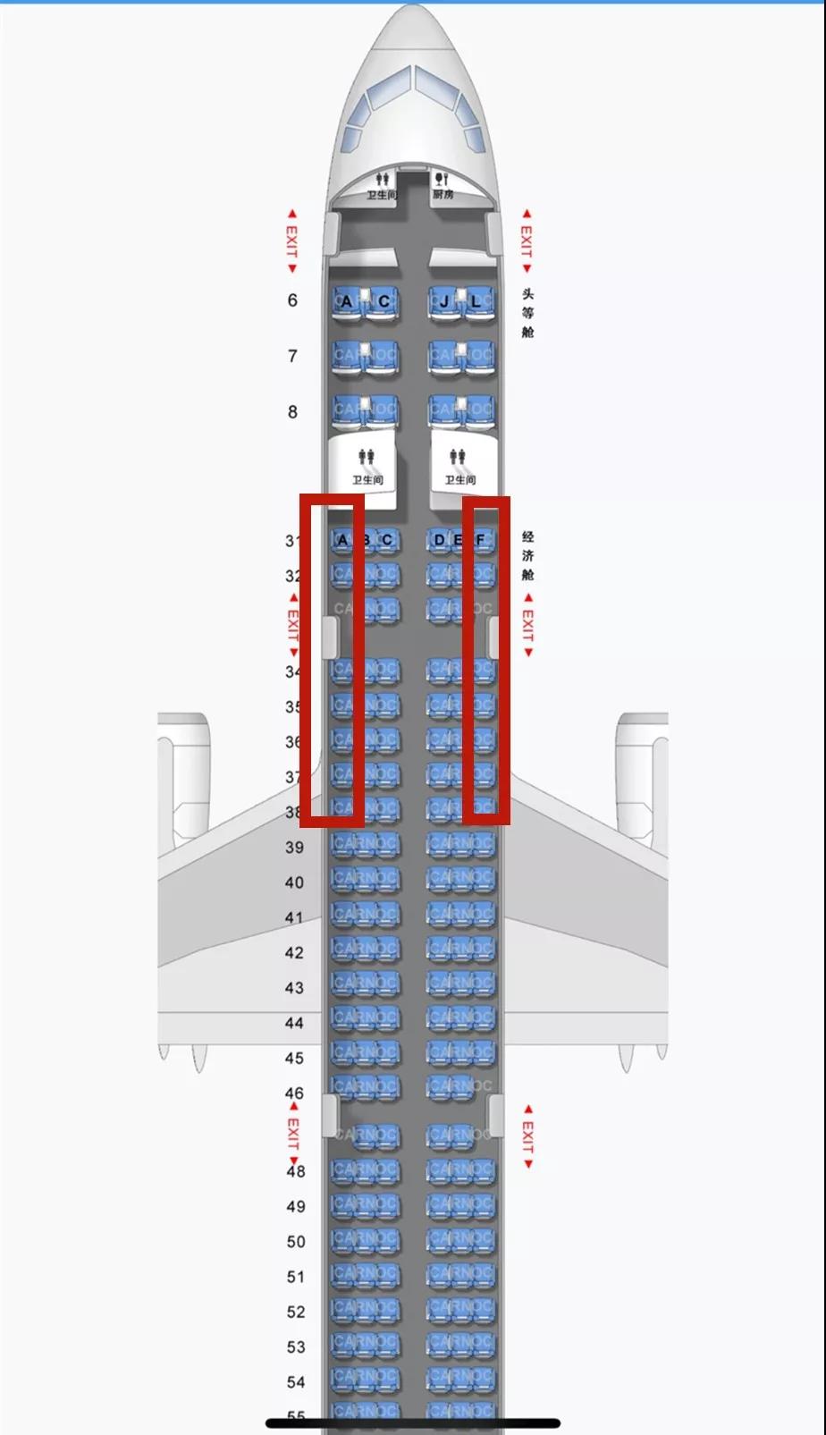 窄體客機主要有波音737、757、空客A320,這類飛機A、F為靠窗位置。