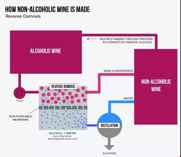 反滲透法(這與海水淡化的原理是一樣的),也叫超過濾法,其利用只允許溶劑透過、不允許溶質透過的半透膜,先葡萄酒中的芳香化合物和酚類物質與酒精和水分開,再通過蒸餾來將酒精和水分離。由于半透膜的成本高,所以這種方法比較昂貴。