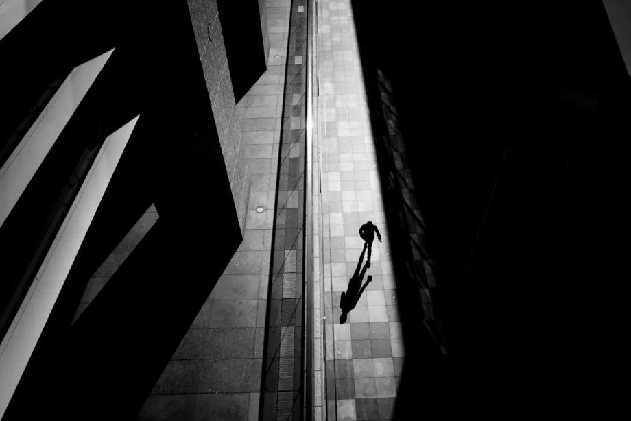 攝影圖片:攝影師Junichi Hakoyama十分擅長拍攝高對比度黑白街頭作品,善于利用場景中建筑物的線條,結(jié)合光影而形成明暗對比,加上充滿故事性的單個(gè)人物融入其中,便成就影像擁有黑白默片的快感。