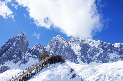 乘坐【冰川大索道】(如遇不可抗拒因素,大索道可調(diào)整為小索道。①遇大風(fēng)、大雪等天氣,索道停運(yùn);②索道公司定期維修停運(yùn);③黃金周國(guó)慶和春節(jié),7、8月旺季,索道公司限票部分游客上不了索道)登臨雪峰,飽覽姿態(tài)萬千的雪域風(fēng)光,抒發(fā)一覽眾山小的凌云壯志;萬年不化的冰川近在眼前,云南橫斷山脈的秀美,一覽無余;