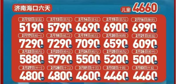 成人 ¥7290 /人, 兒童 ¥4660 /人