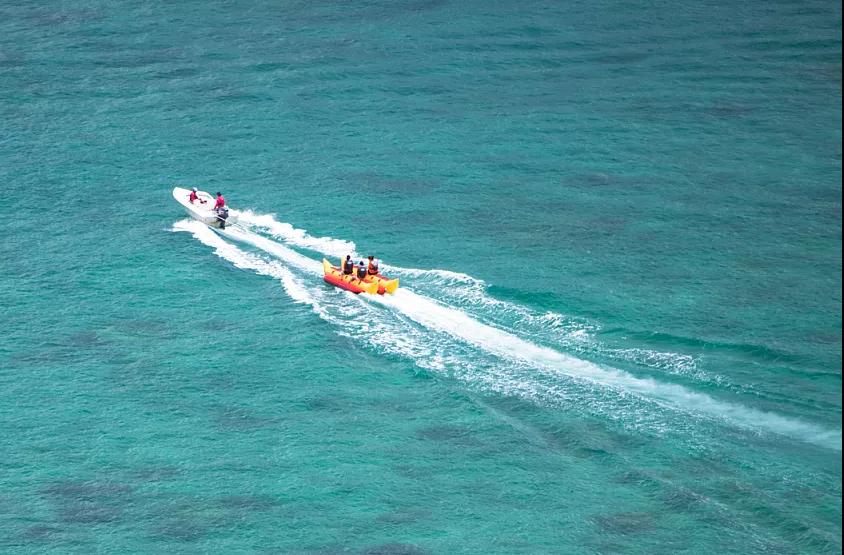 站在沙灘上,浩渺而又純凈的藍不斷涌來,依深淺的不同呈現出黃、綠、淺藍、深藍幾種顏色,仿佛畫上的風景,島上可參加潛水等海上娛樂項目(海上娛樂項目費用不含)或游泳拍照;