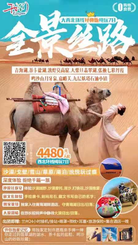 莫高窟門票、張掖丹霞門票(含觀光車)、嘉峪關門票、鳴沙山門票、石油小鎮門票、茶卡鹽湖門票、青海湖二郎劍景區門票。(莫高窟普通門票構成:門票180元/人+交通費10元人+莫高窟數字展示中心48元/人;莫高窟應急票構成:門票90元/人+交通費10元/人)