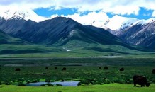 邦達的藏語為“雄鷹飛不出的草地”,【邦達草原】是絕對意義上的西藏界里的大草原,這一塊地勢寬緩、水草豐美的高寒草原位于三江流域之高山深谷中,曾是著名的“茶馬古道”必經之地。怒江支流玉曲上游蜿蜒流淌其中,兩岸廣闊的低濕灘地上生長著茂密低矮的大蒿草、苔草之類的草甸植物,綠茵如氈,成群牛羊在草原上游蕩低頭覓食,偶爾還會有一些藏原羚出沒其間。