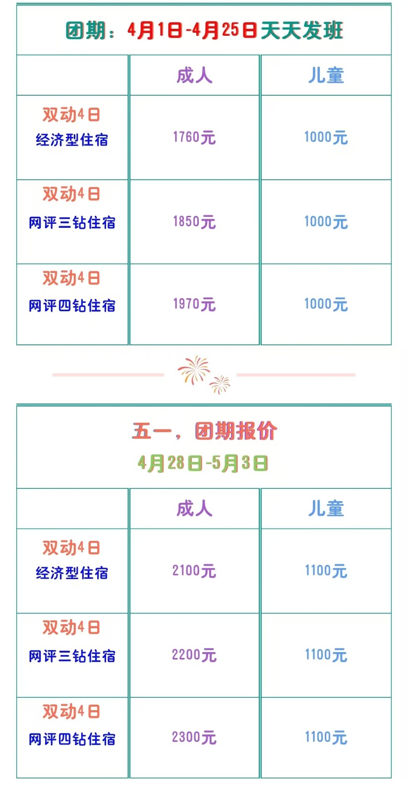 出團(tuán)日期:4月1日-4月25日4月28日-5月3日