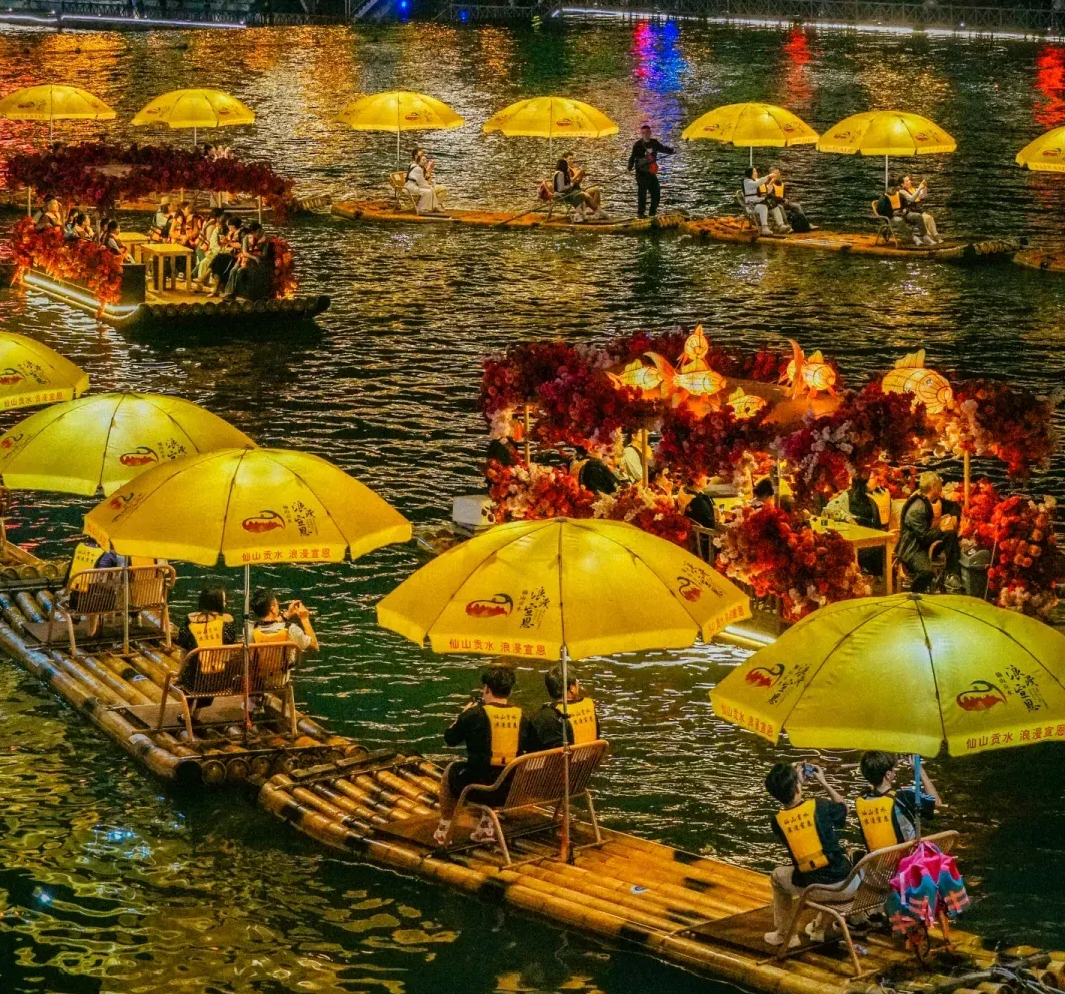 ●后乘車前往打卡湖北版“洪崖洞”-宣恩【仙山貢水】(車程時間約0.5小時,游覽時間約40分鐘),景區(qū)有各類貢水竹筏可供游客自費泛舟體驗,欣賞音樂噴泉,觀賞龍游貢水。