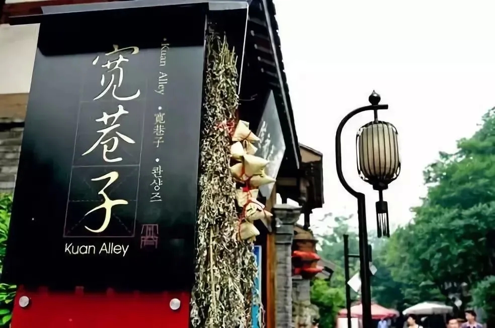 ●【寬窄巷子】由寬巷子、窄巷子、井巷子平行排列組成,全為青黛磚瓦的仿古四合院落,這里也是成都遺留下來的較成規模的清朝古街道,與大慈寺、文殊院一起并稱為成都三大歷史文化名城保護街區。