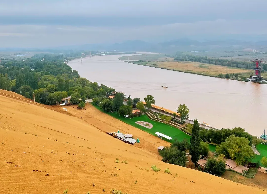隨后前往游覽【沙坡頭】(含門票,游覽約2.5小時(shí))沙坡頭完美詮釋了“塞上江南”的奇觀。這里一半是騰格里沙漠的金黃壯闊,細(xì)膩沙粒在陽光下閃光,滑沙時(shí)的歡騰與駝鈴清脆交織;一半是黃河的碧波蕩漾,羊皮筏子載著游人穿越千年古渡,飛索凌空掠過河面,盡覽兩岸風(fēng)光。站在王維觀景臺(tái)前,“大漠孤煙直,長河落日?qǐng)A”的詩句在此照進(jìn)現(xiàn)實(shí),夕陽西下,黃沙、碧水、霞光勾勒出震撼畫卷。