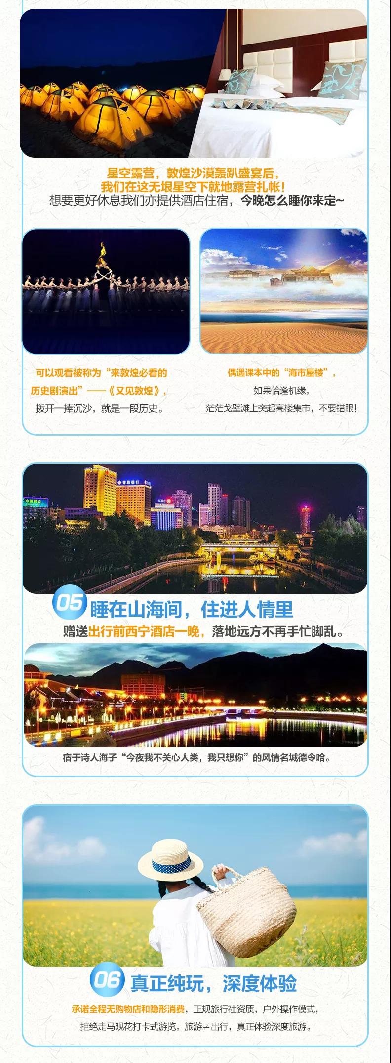 贈送:贈送特色敦煌沙漠BBQ;贈送貼心禮包旅游三寶、魔術頭巾、礦泉水;贈送西寧市區24小時接機/接火車服務。(贈送項目不用費用不退)