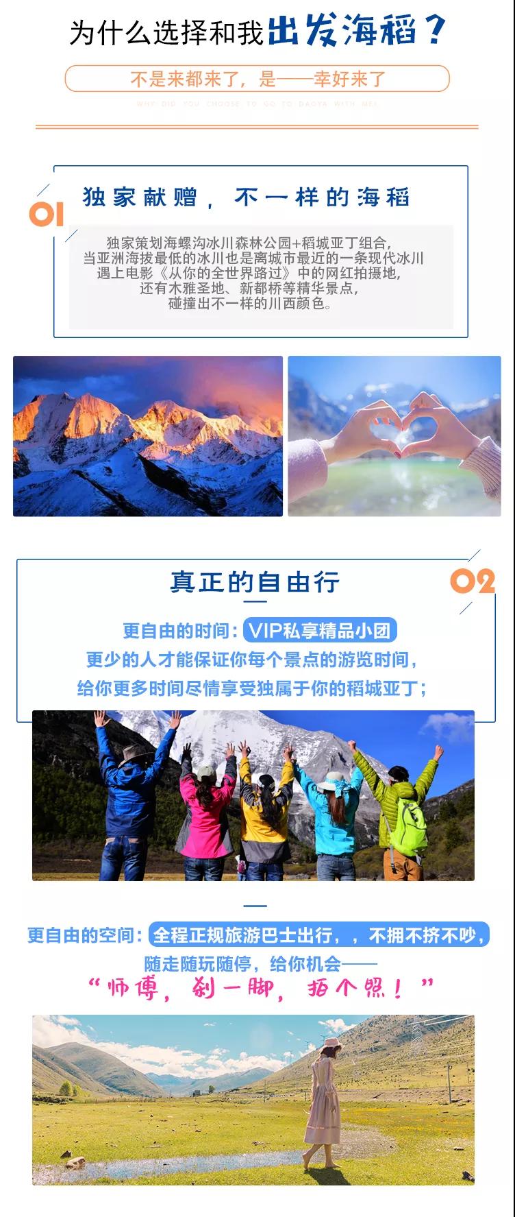 今天是行程最后一天,早餐后我們從新都橋出發(fā)前往【國(guó)家地質(zhì)公園海螺溝】,抵達(dá)景區(qū)后換乘景區(qū)觀光車(觀光車費(fèi)70元/人敬請(qǐng)自理),經(jīng)三號(hào)營(yíng)地前往干河壩索道站,之后大家可以選擇三種方式參觀冰川: