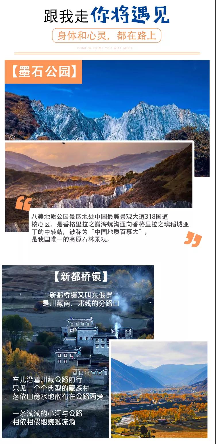 如果時(shí)間尚早,大家還可以去自由游覽【新都橋】這一令人神往的“攝影天堂”,神奇的光線,無垠的草原,彎彎的小溪,金黃的柏楊,山巒連綿起伏,藏寨散落其間,牛羊安詳?shù)爻圆荨ㄎ鞯钠皆L(fēng)光美麗地綻放。