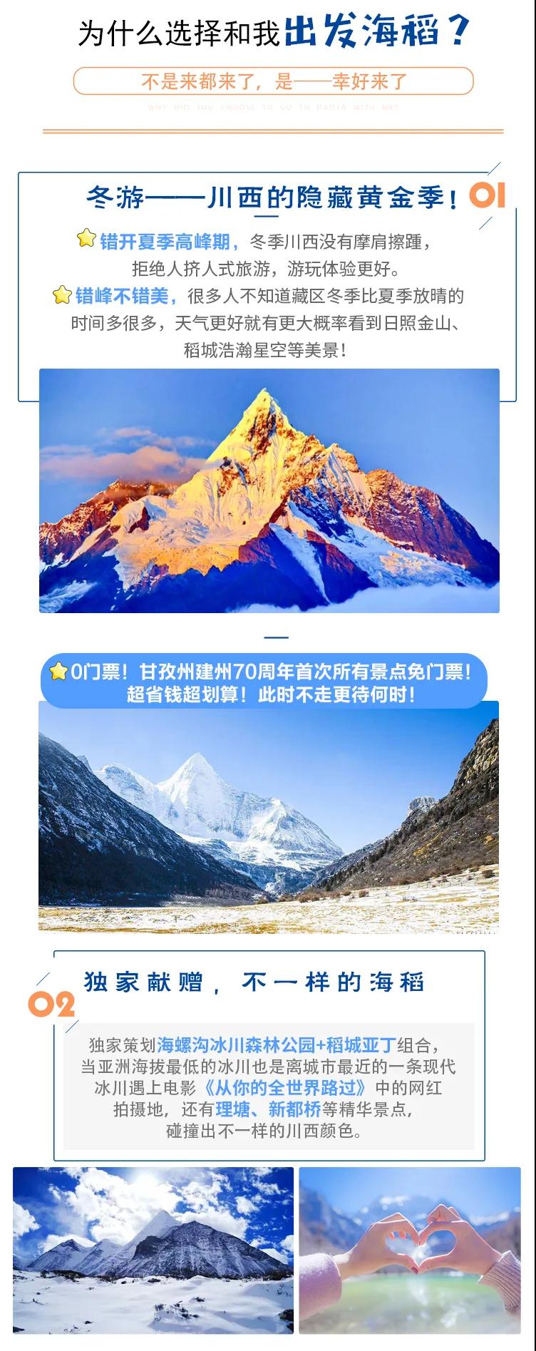 今天是行程最后一天,早餐后我們從新都橋出發前往【國家地質公園海螺溝】,抵達景區后換乘景區觀光車(觀光車費70元/人敬請自理),經三號營地前往干河壩索道站,之后大家可以選擇三種方式參觀冰川: