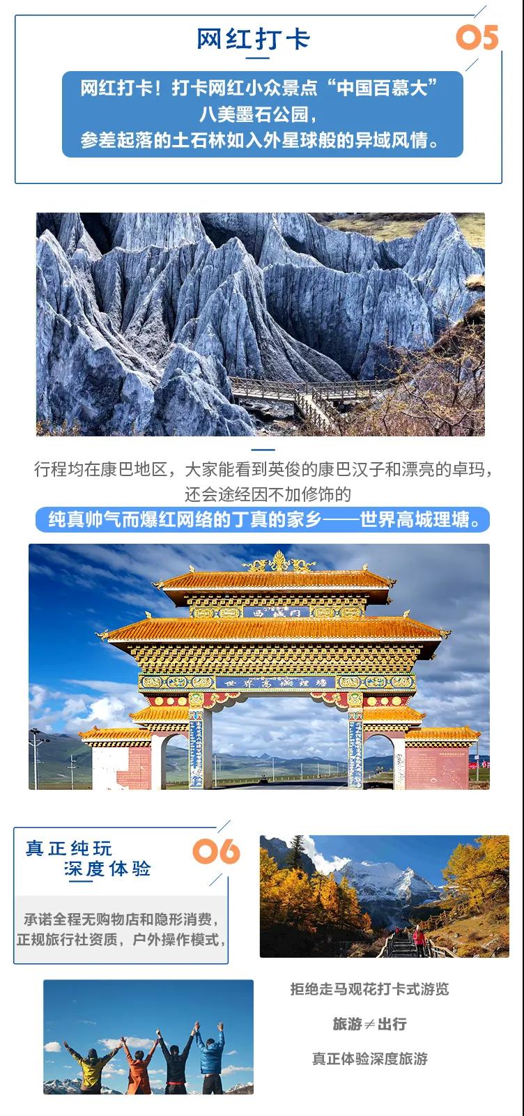 稻城亞丁+海螺溝冰川森林公園+墨石公園+新都橋+瑪尼河谷+塔公草原+理塘+日瓦+天路十八彎