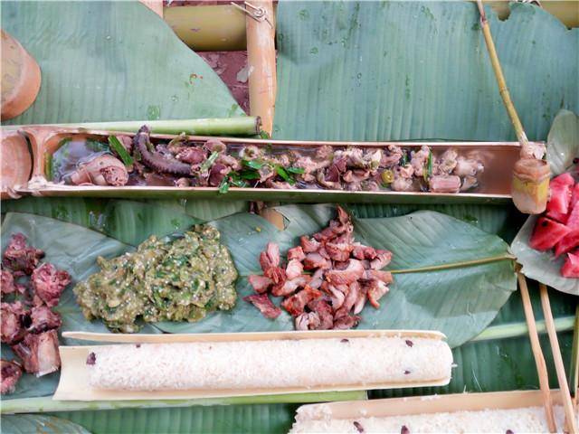 午餐品嘗熱帶雨林現場定制--【雨林竹筒大餐】,勤勞樸實的瑤族、傣族祖先在幾千年前就會就地取材、就地生火做飯,原始而淳樸、新鮮而美的雨林美食大多以煮、烤的方式進行,部分菜肴可根據貴賓需求共同參與,共同烹飪,像英國貴族一樣去體驗戶外運動,戶外美食,人生僅此一次,絕味美食世間再無它處!