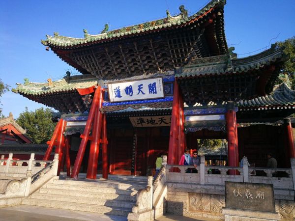 中國西北地區(qū)著名古建筑群之一,原名太昊宮,俗稱人宗廟,地址位于甘肅省天水市秦州區(qū)西關(guān)伏羲路。一九六三年被甘肅省人民政府公布為甘肅省重點(diǎn)文物保護(hù)單位,現(xiàn)為全國重點(diǎn)文物保護(hù)單位。伏羲廟坐北朝南,臨街而建,院落重重相套,四進(jìn)四院,宏闊幽深。廟內(nèi)古建筑包括戲樓、牌坊、大門、儀門、先天殿、太極殿、鐘樓、鼓樓、來鶴廳共10座;新建筑有朝房、碑廊、展覽廳等6座。新舊建筑共計76間。整個建筑群包括牌坊、大門、儀門、先天殿、太極殿沿縱軸線依次排列,層層推進(jìn),莊嚴(yán)雄偉。
