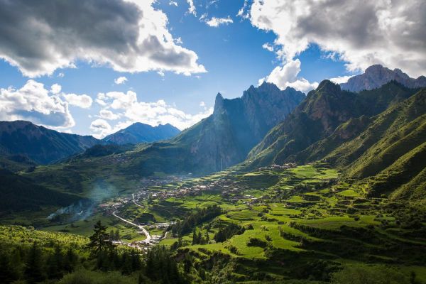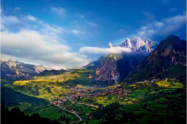 甘肅省迭部縣益哇鄉(xiāng)“扎尕那”是藏語,意為“石匣子”扎尕那山位于迭部縣西北34公里處的益哇鄉(xiāng)境內(nèi),是一座完整的天然“石城”俗有“閻王殿”之稱。地形既像一座規(guī)模宏大的巨型宮殿,又似天然巖壁構(gòu)筑的一座完整的古城。正北是巍峨恢弘、雄偉壯觀、璀璨生輝的光蓋山石峰,古稱“石鏡山”因灰白色巖石易反光而有其名;東邊聳峙壁立的俊俏巖壁,凌空入云,云霧繚繞;南邊兩座石峰拔地而起,相峙并立成石門;再南至東哇、納加一帶,峭壁矗立,清流跌宕,水磨飛輪,流轉(zhuǎn)不息。山勢奇峻、景色優(yōu)美,猶如一座規(guī)模宏大的石頭宮殿,這片世外桃源雖然早在近百年前就被洛克譽(yù)為亞當(dāng)和夏娃的誕生地,但至今仍是一塊處女地。