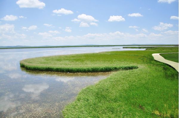 【花湖】(電瓶車30元自理)(游覽約 2H)花湖是熱爾大壩草原上的一個天然海子。湖岸邊蘆葦茂密,因湖中盛開小花而得名,這里是觀看國家一級保護(hù)動物黑頸鶴的最佳去處。花湖湖面遼闊,水下是深不可測的沼澤地,沿著湖邊的棧道行走,可以走到濕地中間的觀景臺。