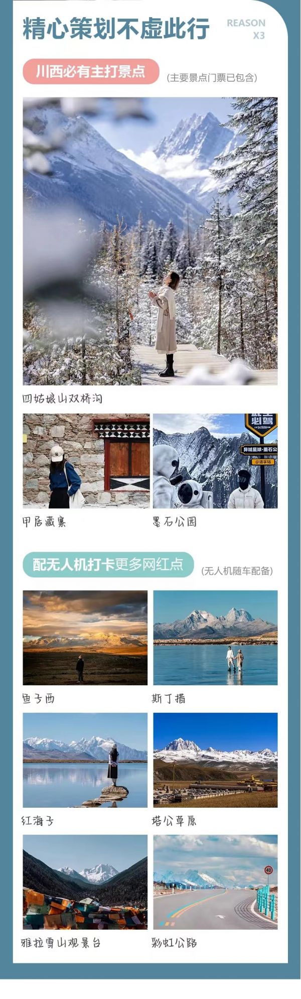 (3)因川西各景點間路途遙遠孕婦、哺乳期兒童、70歲以上老人不宜報團(65-70歲之間參團需簽訂免責協議)