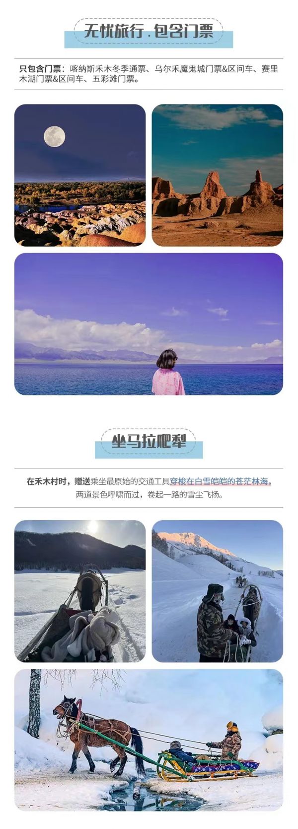 【禾木自由活動推薦,價格僅供參考,以景區公示為準:】