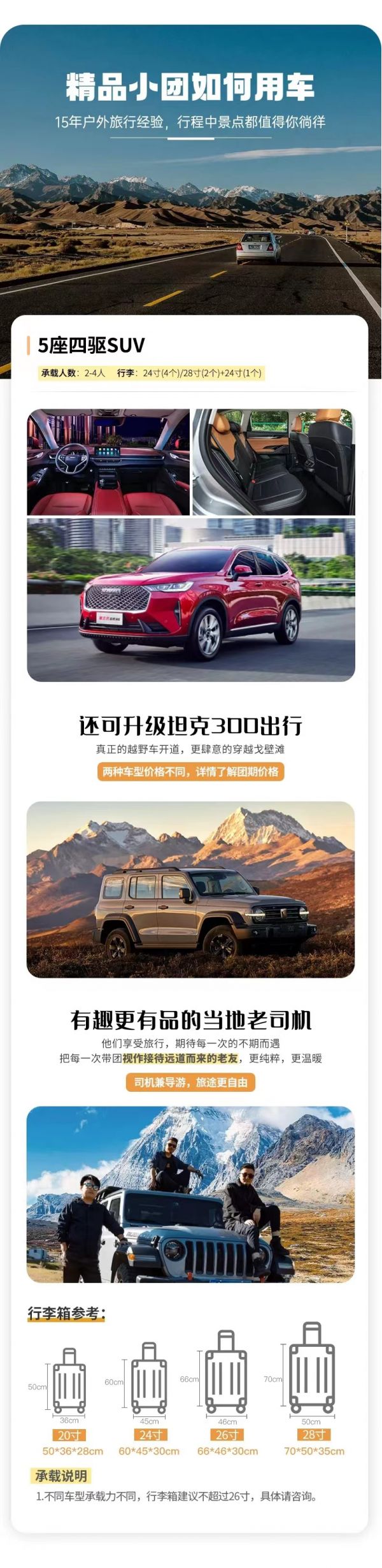 (3)本線路沒有“代購業務”,請不要在團隊中或者完團后,請求駕駛員代購任何產品,如有需要請自行篩選、購買。