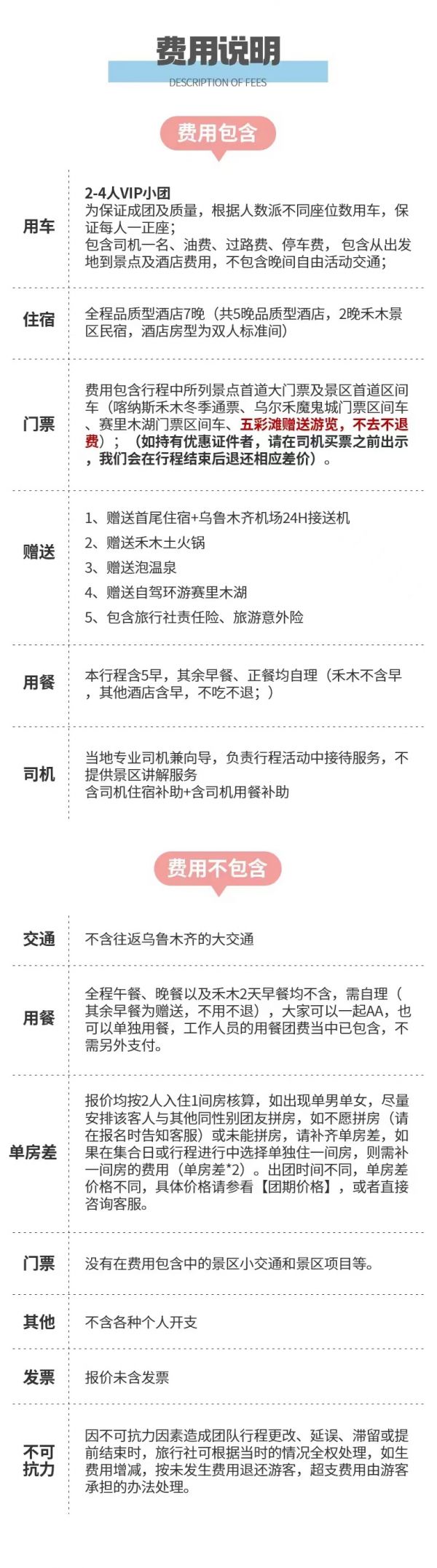 接站服務:本次活動提供烏魯木齊24小時接機/接站服務,工作人員會在您出發日期前一天21:30之前向您推送消息并與您聯系,如果超過時間沒有接到任何通知,請及時與報名處聯系。(接站等待時間一般為15-20分鐘,最長不超30分鐘,節假日拼單人數較多情況下客人等待時間可能會延長)。