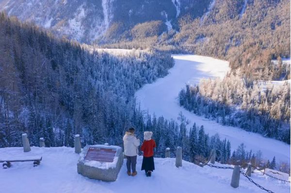 沿喀納斯河一路觀光,欣賞初雪的原始森林風光,前往喀納斯湖邊游覽喀納斯湖美景,喀納斯的湖頭升起陣陣薄霧,仿若仙境。在明凈純澈又安寧的冬日時光中,喀納斯化身為美麗的使者,呈現出一片晶瑩剔透的冰雪樂園。兩岸松樺在薄霧中朗讀著詩人“千山鳥飛絕,萬徑人蹤滅”的詩句,壯美山川河流與夢幻霧凇景致構成一片寧靜的人間凈土,真可謂攝影師的天堂。