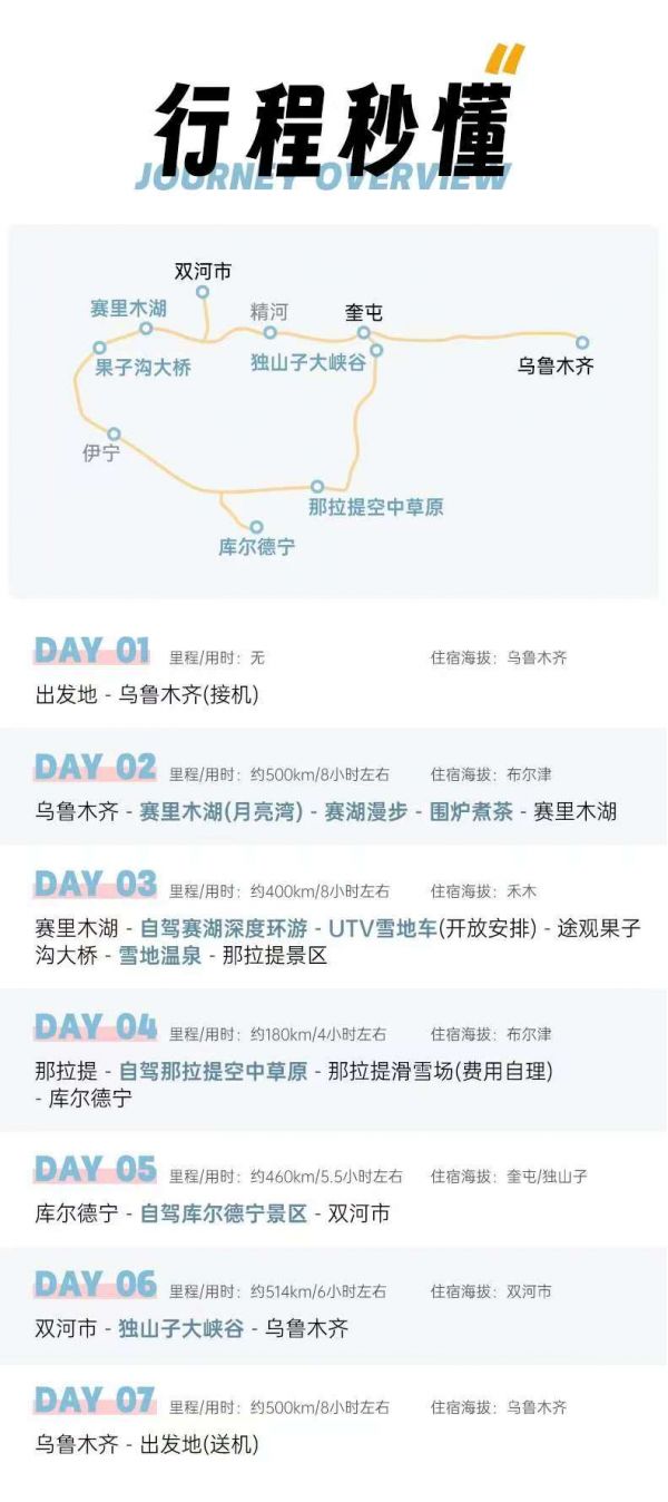 我社將根據實時路況調整行程,核算并退回喀納斯或禾木景區門票及住宿差價;若前往其他景區,將實時核算門票差價,多退少補。
