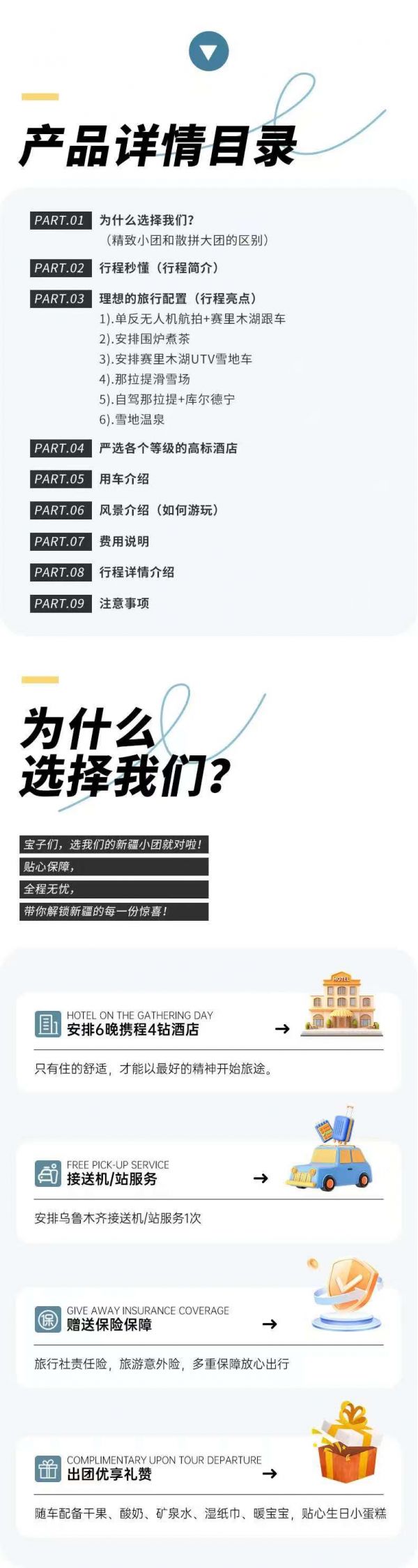 (注:冬季冰雪路面易滑,每年均有不少無冰雪駕駛經驗的自駕司機撞到我社車輛。我社每年約有 20-50 臺車輛被撞,交警處理效率高。通常僅涉及保險杠或燈具等小問題,不會因此換車。若車輛嚴重損壞無法行駛,我社在阿勒泰地區有車輛調度中心,可安排車輛接管游客,通常需耽誤約5小時。此時需游客保持耐心,車上仍提供暖氣,也可就近下車玩耍。此情況下無額外費用退還,亦不額外收費。修車及換車損失由我社承擔相比自駕更為安心。)
