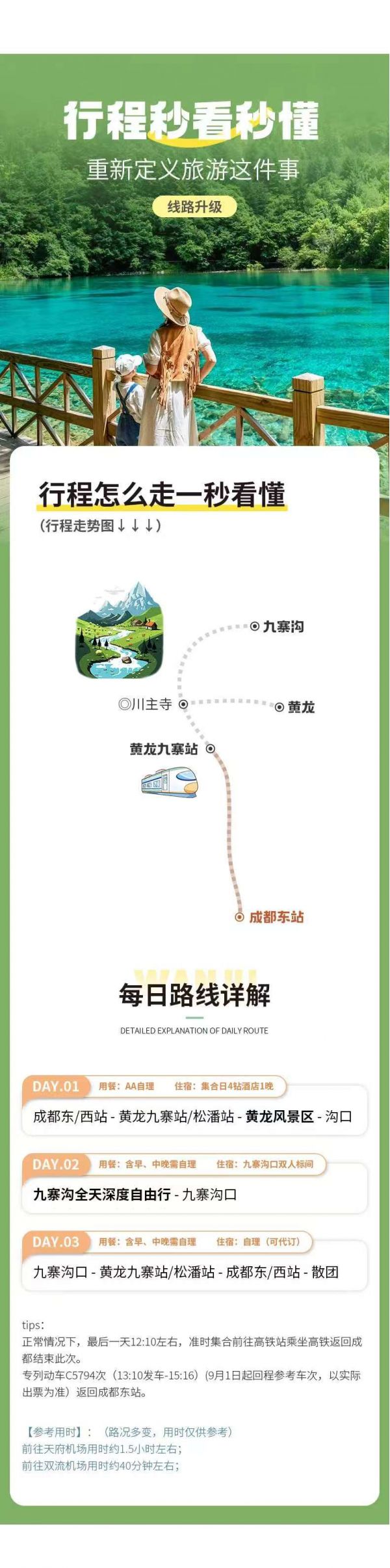 D1聊城—成都東站 —黃龍九寨站/松潘站—黃龍風(fēng)景區(qū)—九寨溝口