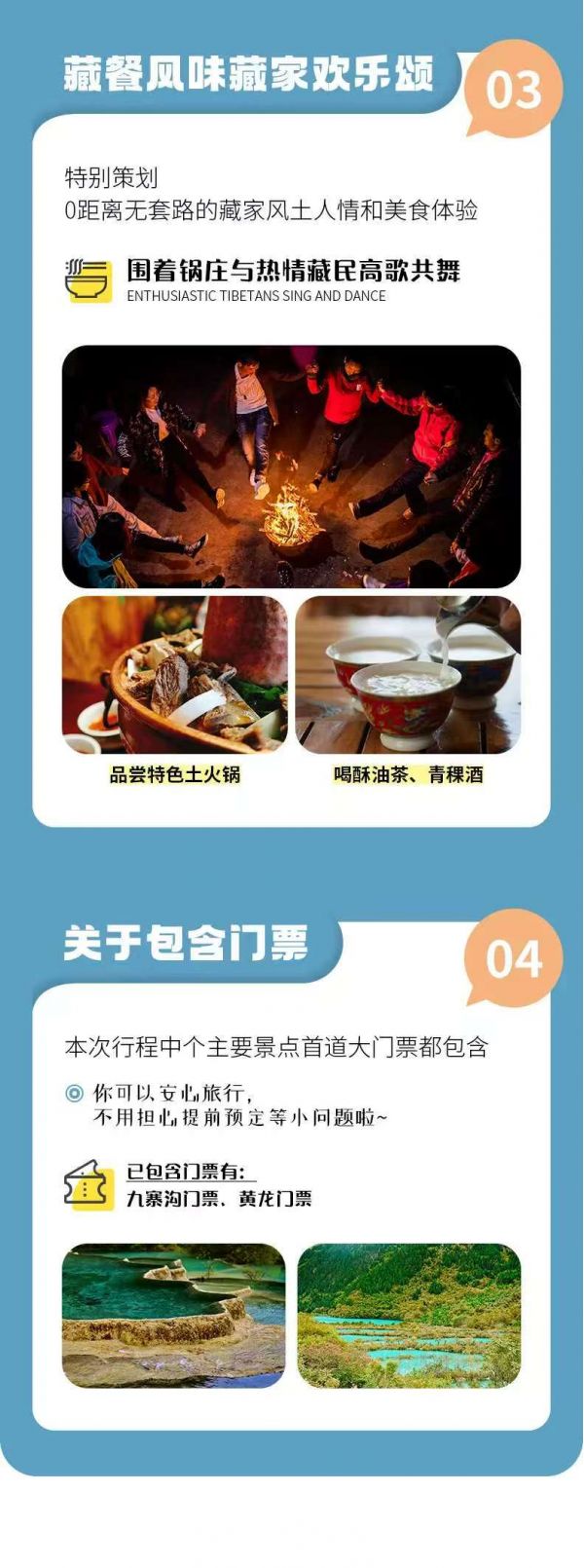 不含景區(qū)配套設(shè)施及小交通不含九寨溝觀光車90元/人(必須消費(fèi));不含黃龍上行索道80元/人,下行索道40元/人;黃龍定位講解器30元/人;黃龍電瓶車20元/人(自愿乘坐,每天5000張票,旺季請(qǐng)?zhí)崆邦A(yù)定)如需乘坐,請(qǐng)?jiān)趫?bào)名時(shí)第一時(shí)間在公眾號(hào)或者攜程購買;景區(qū)保險(xiǎn):九寨溝景區(qū)保險(xiǎn)10元/人自理;黃龍景區(qū)保險(xiǎn)10元/人自理;