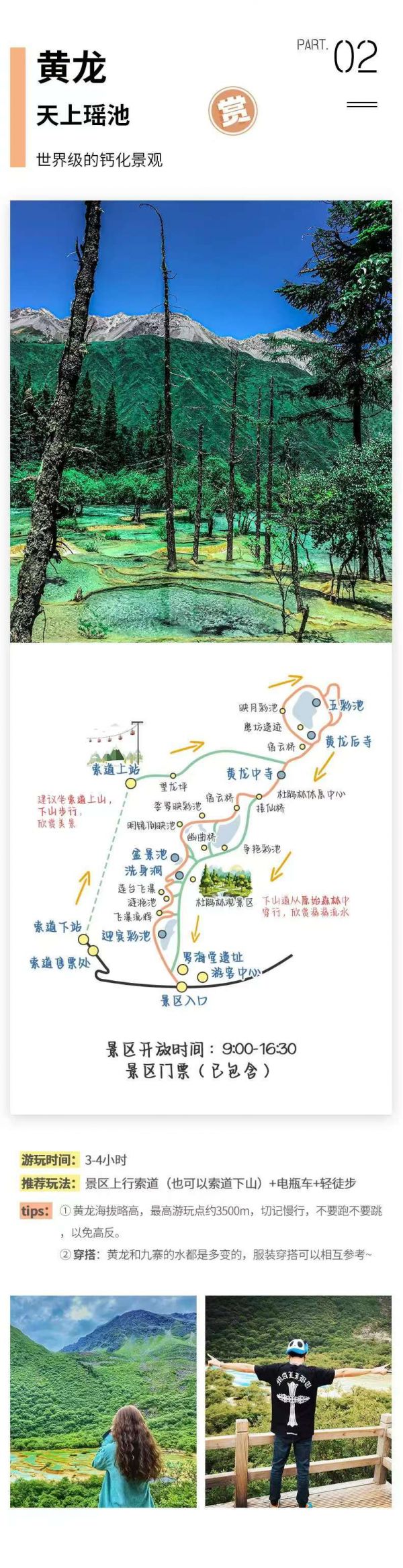 (今日游覽黃龍可能晚餐時(shí)間較晚,建議游客攜帶適量干糧零食等及時(shí)補(bǔ)充能量;)