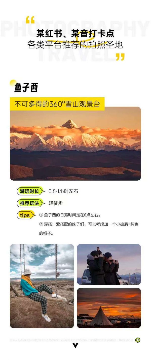 (3)在旅行過程當(dāng)中,是否能出片,出什么樣的片子,是天氣,光線,季節(jié)等綜合因素決定的,團隊不可能因為某個景點未拍到滿意的片子而增加停留時間。