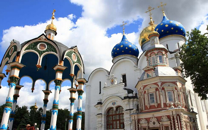 今天部分拍攝點包括謝鎮(zhèn)民風特色,修道院建筑精華及藝術(shù)杰作。【圣三一修道院】*(內(nèi)觀,約1.5小時)是東正教最古老的教堂建筑群之一,里面有許多著名的俄羅斯建筑古跡。其中最古老的是三位一體教堂,里面安放著謝爾蓋院長的棺木。周圍坐落著圣靈降臨教堂、圣母升天教堂、圣謝爾蓋教堂、左希姆和薩瓦提等教堂。它的建筑精華包括:用白色半寶石砌成的圓頂、黃金雕成的壁上橫木、由魯伯里歐夫所繪圣像裝飾而成的圣像門等,都是令人贊嘆的藝術(shù)杰作。以畫《三位一體》而出名的俄羅斯畫家安德烈·魯布廖夫的壁畫作品一度收藏在教堂中,現(xiàn)在則收藏于莫斯科的特列基亞科夫畫廊。午餐特別安排品嘗特色俄餐,稍后入住賓館。下午客人可以自由活動,體驗小鎮(zhèn)的民風特色,感受無邊的美景。
