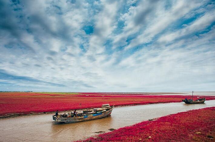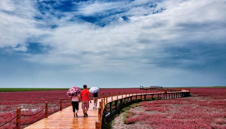 游覽后午餐,乘車前往我國(guó)北方最大的濱海濕地城市—盤錦市,抵達(dá)盤錦后前往游覽【盤錦紅海灘廊道】(游覽約3小時(shí)),紅海灘地處遼河三角洲濕地,位于盤錦市西南海濱,是由大片紅色的堿蓬草形成的著名濕地,紅海灘國(guó)家風(fēng)景廊道是紅海灘面積最大的景區(qū),在這里你可以漫步于木棧道、看紅如熾焰的堿蓬草在海岸線上無(wú)限延伸,而紅海灘遠(yuǎn)處的油井在夕陽(yáng)下更是一副迷人的畫卷,秋天來(lái)此還能看到金黃色的稻田與紅海灘相呼應(yīng),以及成群的候鳥展翅于灘涂的深處,游覽后晚餐,晚餐品嘗盤錦稻香河蟹宴,晚餐后入住酒店休息。