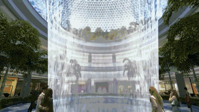 水流從玻璃穹頂中心傾瀉而下