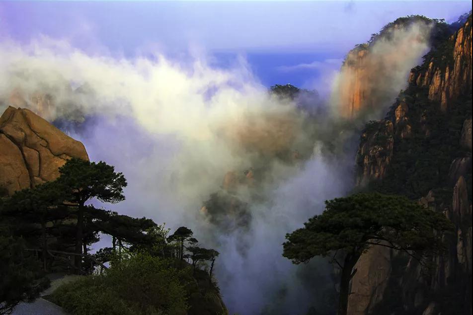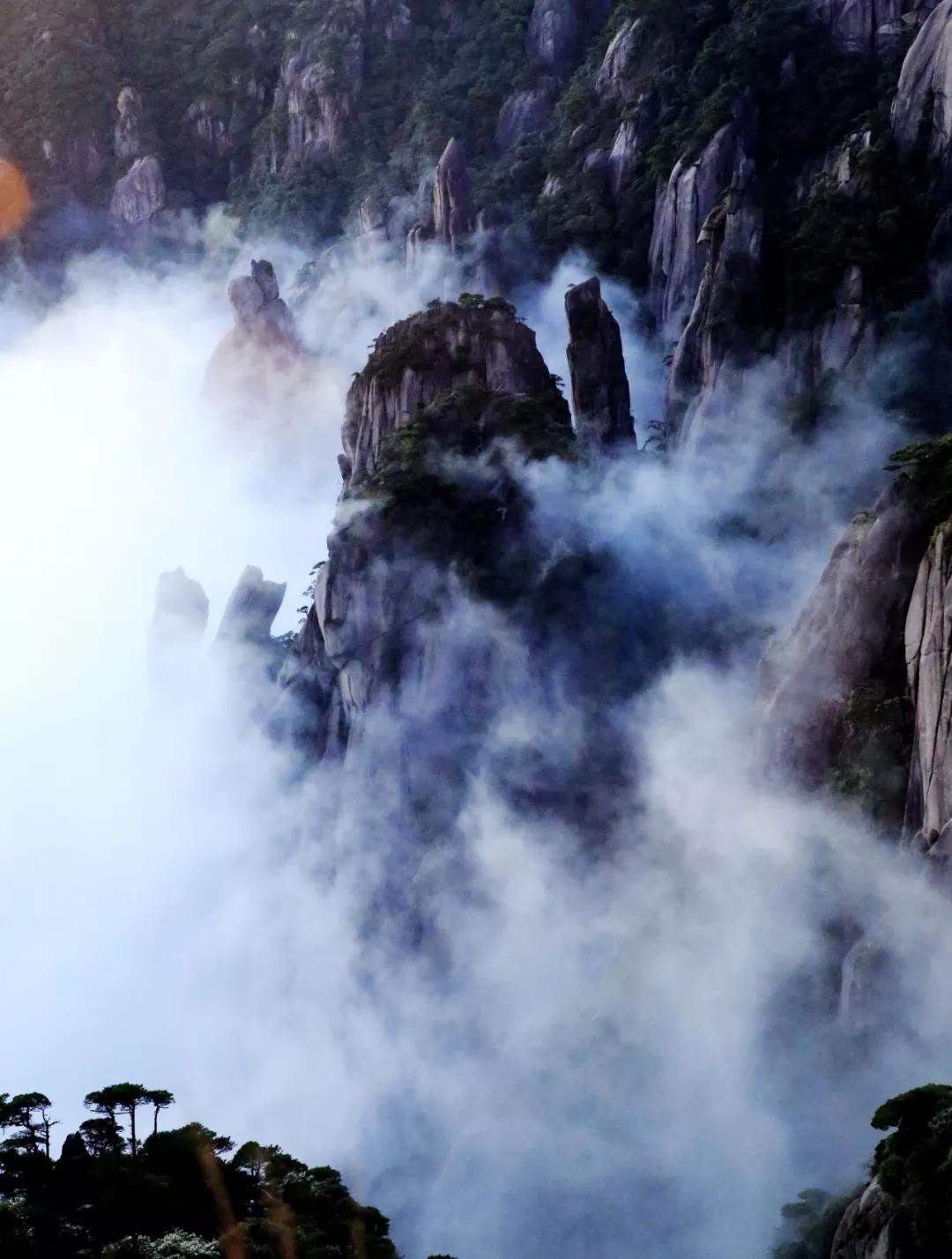 6月的三清山是一個多變的三清山,降雨過后,三清山云霧彌漫,在山谷中涌動起伏,群山若隱若現,女神在云霧中翩翩起舞,美輪美奐。