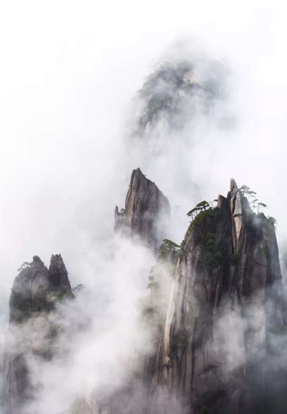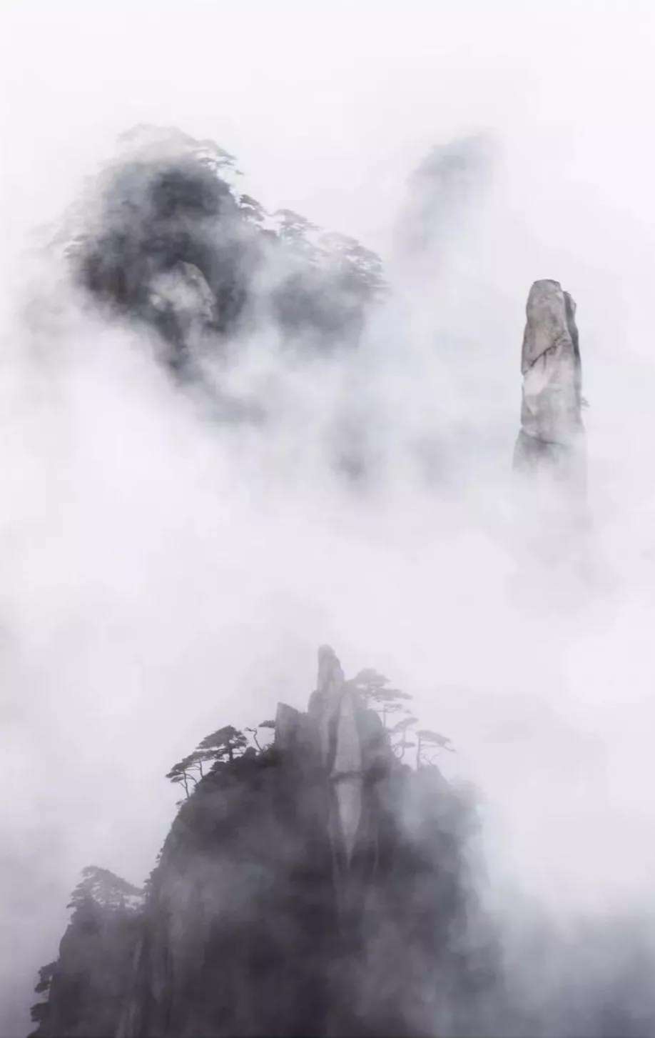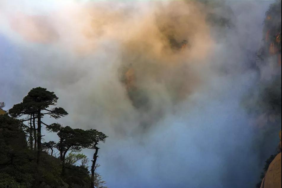 山間云海翻滾,變幻莫測;奇峰危崖,變成了一座座蓬萊仙山,方嘆峰巒骨骼清奇,轉瞬又消失于云霧中,動如脫兔,靜如處子,動靜變幻,神奇詭秘......目不暇接,流連忘返。