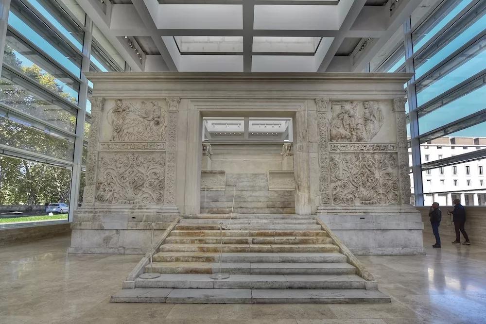 這是古羅馬最著名的紀念壇之一,壇壁上細膩的雕刻著這位偉大的帝王與他生命中最親密的一群人,他們姿態優雅的走在一列隊伍中,好似相扶攙扶,共同創造了那個偉大的時代。