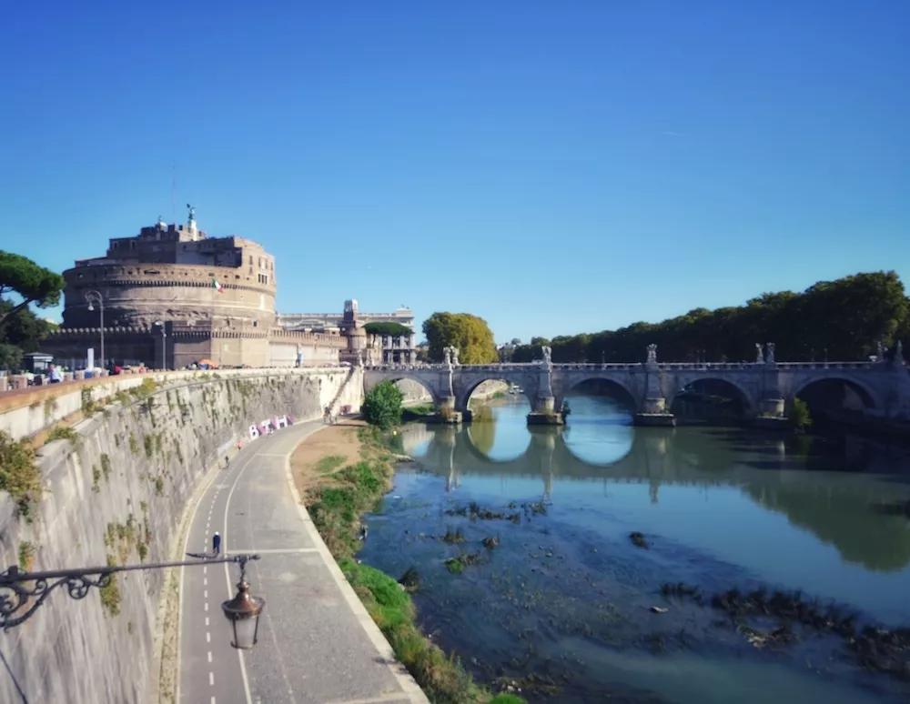 在臺伯河畔,另一座蔚為壯觀的建筑——圣天使城堡,是為哈德良皇帝建造的陵墓。