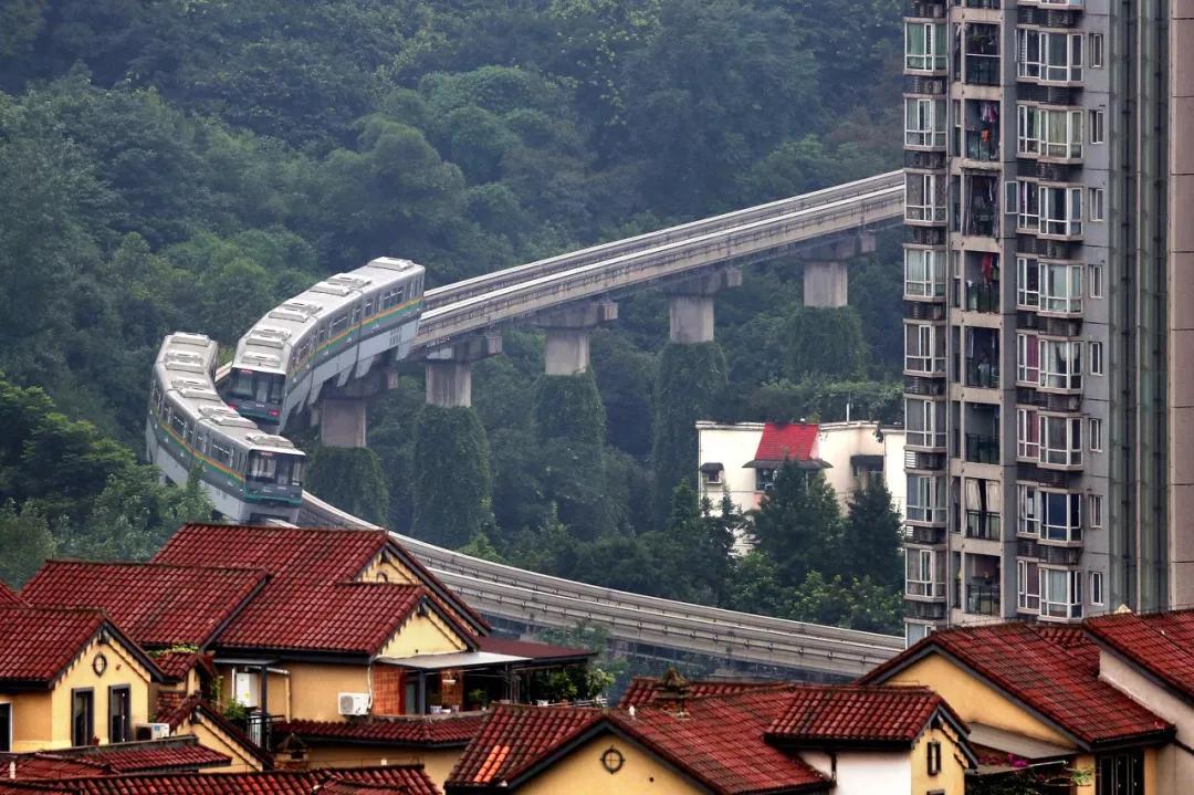 在山城重慶,軌道隨山勢蜿蜒,其中最急的彎道當屬2號線平安站到大渡口站段,約90度的彎道,如過山車一般驚險刺激。