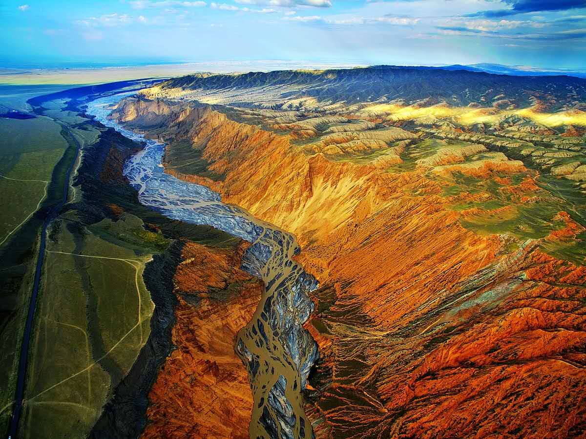 安集海大峽谷又名紅山大峽谷,位于沙灣縣安集海鎮以西的天山北麓地質斷裂帶,從烏魯木齊出發走烏奎高速從沙灣/安集海出口下高速,沿G312國道向西開約40公里,經過安集海辣椒市場和博爾通古度假村大門,2-3公里后就看到一個很大的T字形三岔路口,路口以南東側有一個加油加氣站,往南向紅山老煤礦方向開50公里即可。